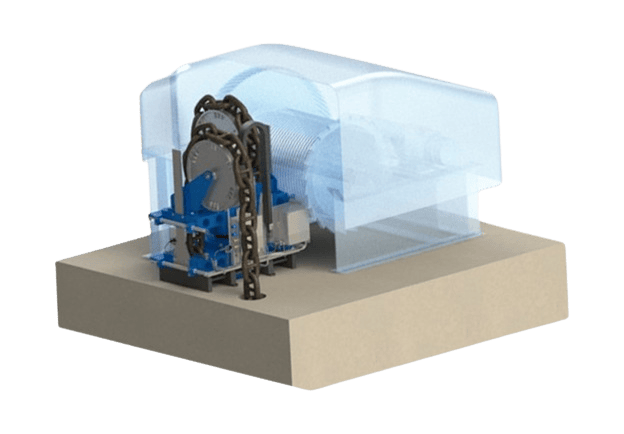 And our chain-based system will never experience a failure resulting from a rope skipping a sheave, snagging, and breaking due to debris lodged in the submerged lower sheaves.